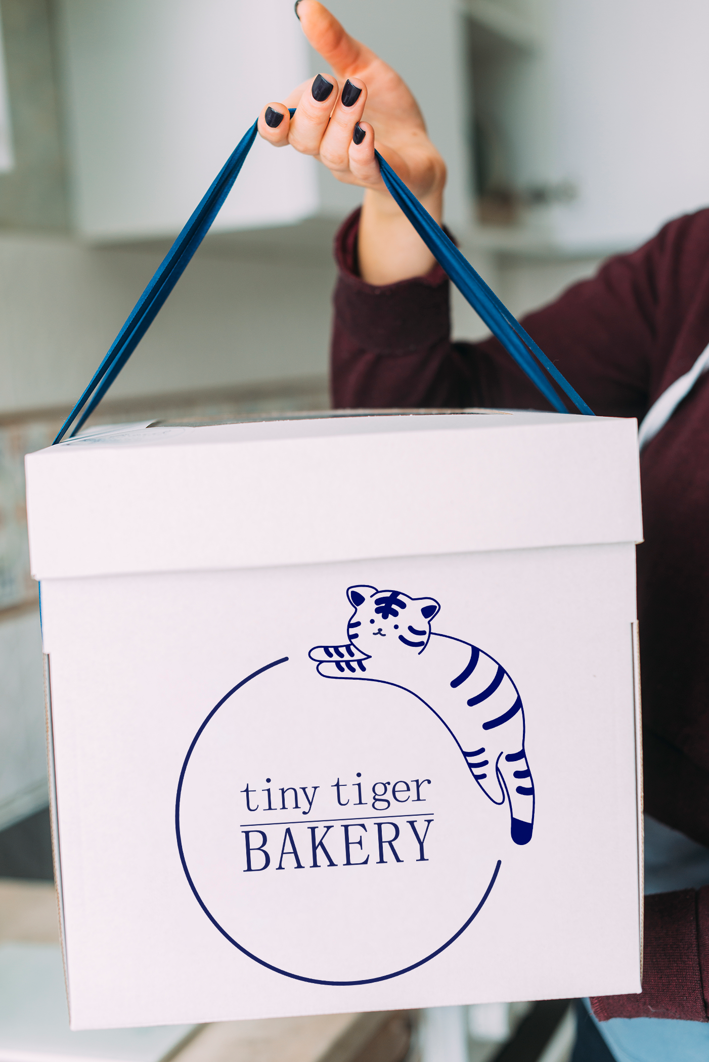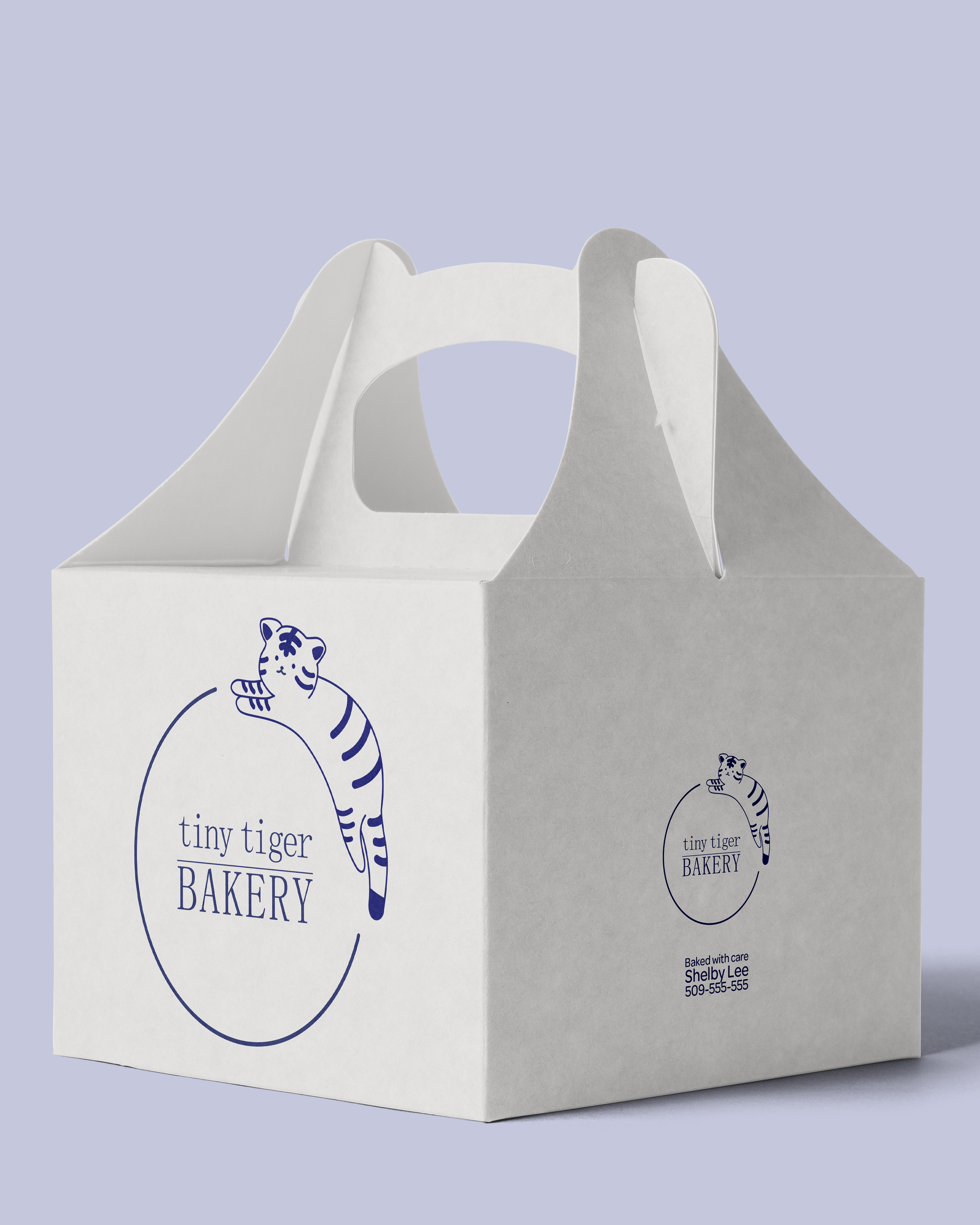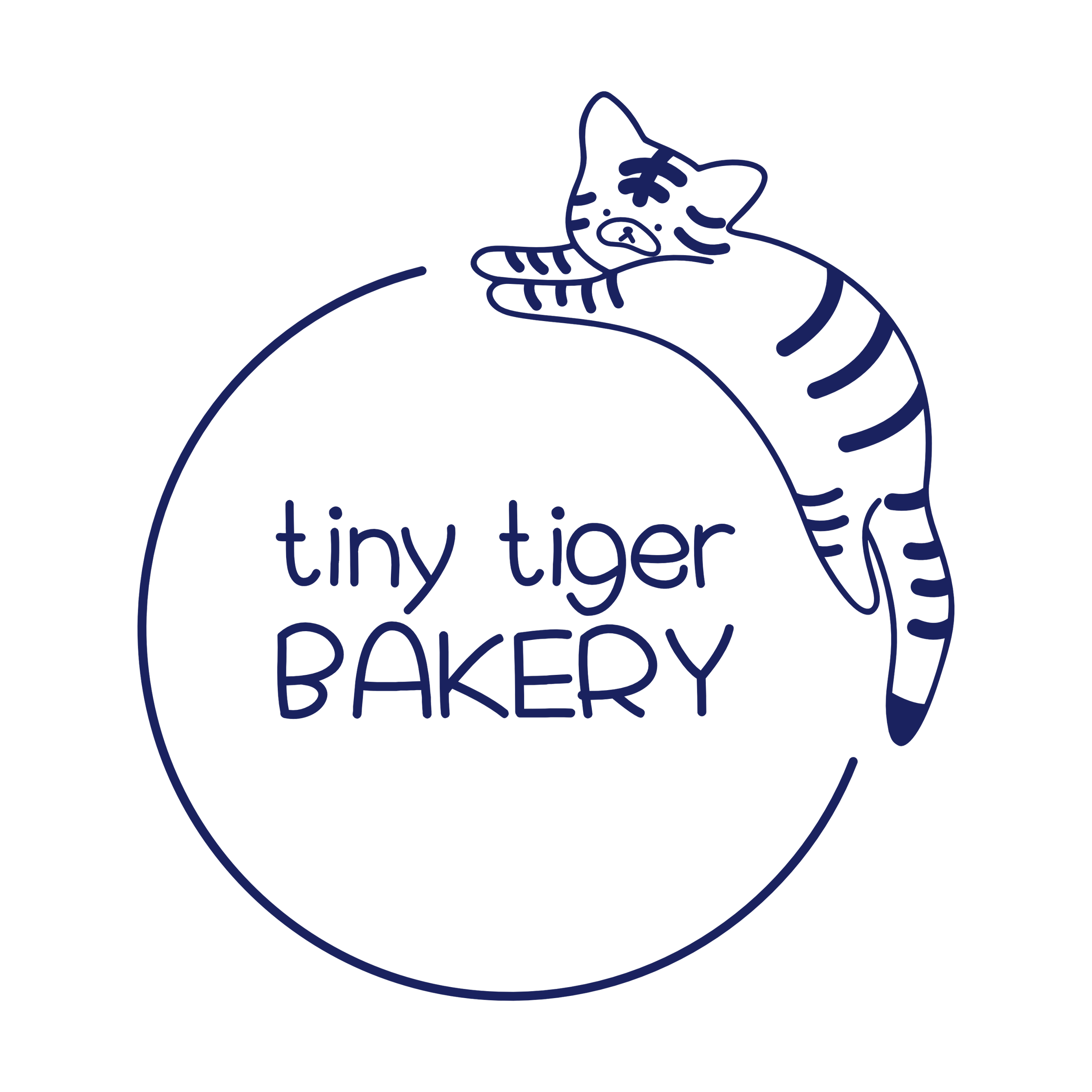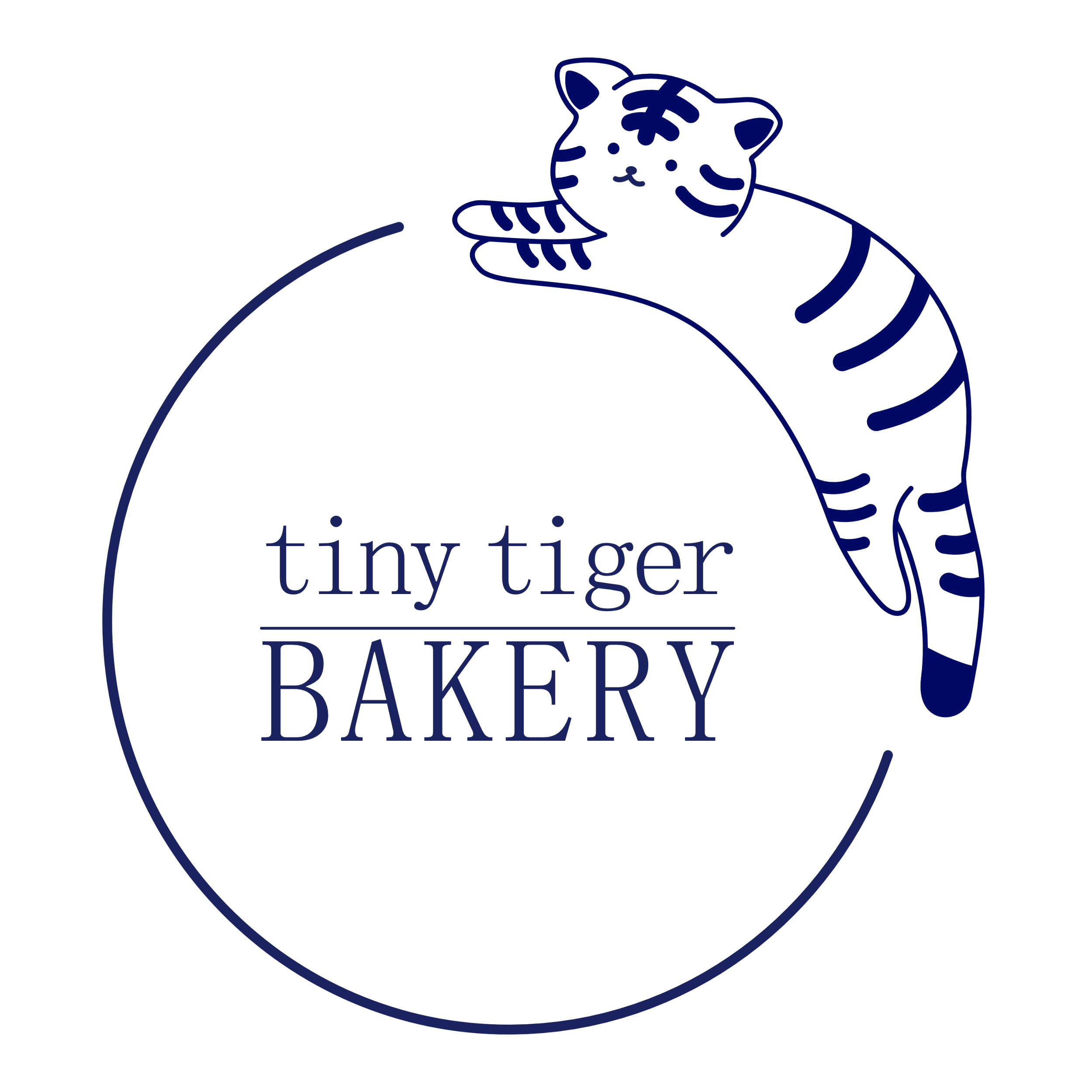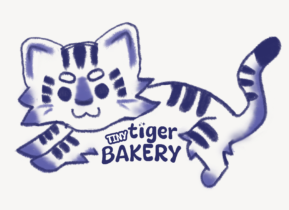 The Tiny Tiger Bakery logo was created for a one-woman baking business that wanted a brand identity that felt personal, playful, and meaningful. The client chose a tiger mascot inspired by her Chinese Zodiac animal, allowing the design to subtly celebrate her heritage and cultural identity. The friendly tiger illustration reflects the warmth and charm of her homemade baked goods, while the simple, approachable line style keeps the brand inviting and memorable. The deep blue color palette was selected to reference traditional porcelain vases, connecting the visual identity to cultural craftsmanship and timeless design. Together, the mascot, typography, and color create a logo that feels both personal and distinctive for the bakery.